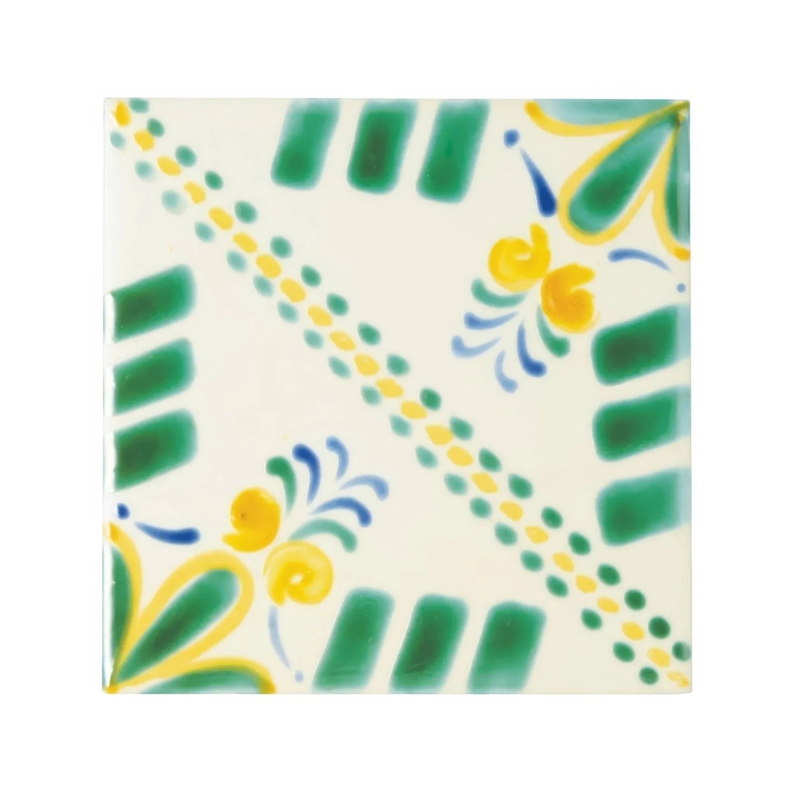 Capture the colonial elegance of the Yucatán with the Acapulco Merida Ceramic Tile—a 10x10cm hand-painted marvel featuring an intricate, interlocking floral-geometric design.