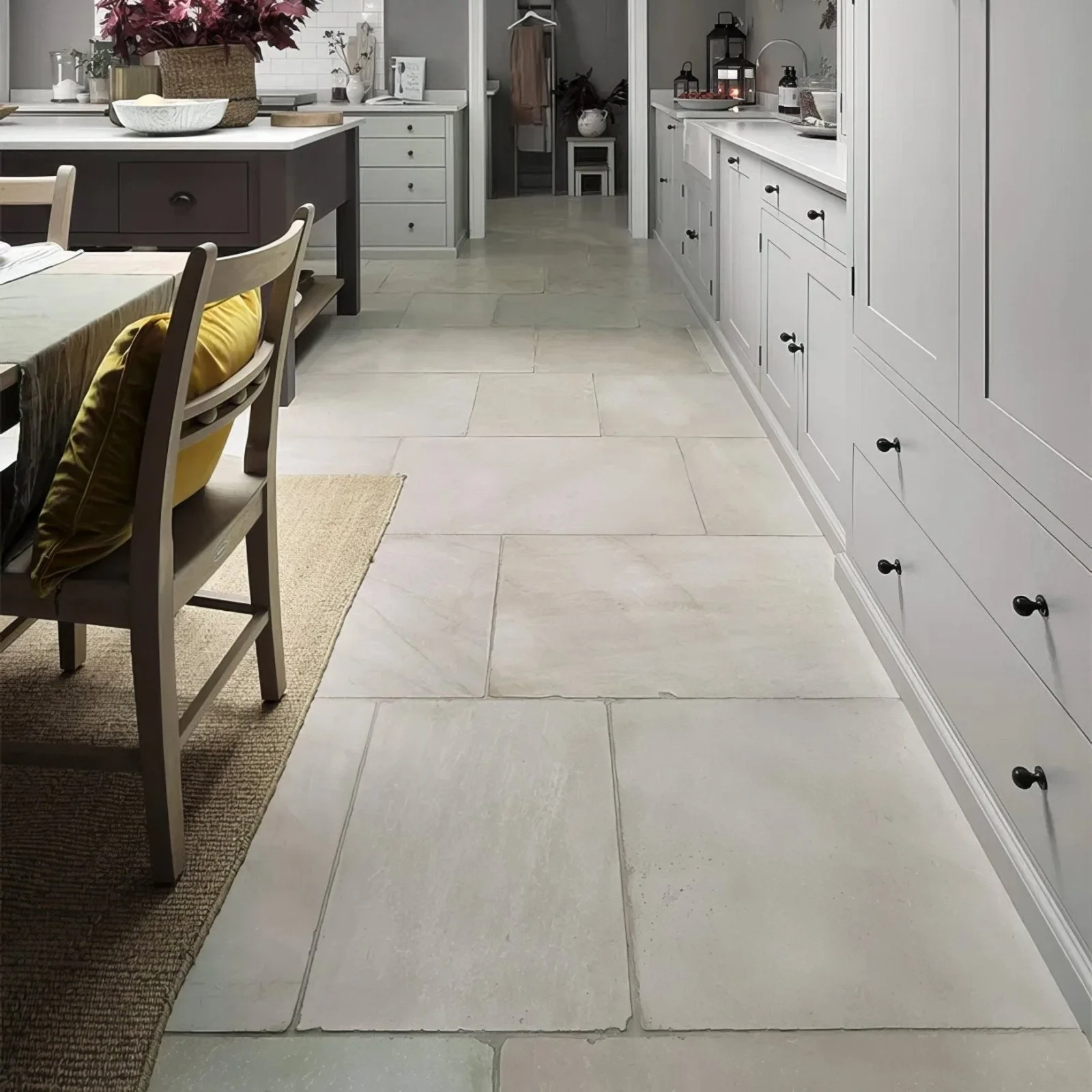 Immerse yourself in the enduring allure of this natural stone, featuring a tumbled sandstone finish. These rustic flagstones radiate a palette of ivory to buff tones, echoing the classic charm of historic Portland limestone. With a naturally riven surface, these stones offer an aged appearance that enhances over time, adding a touch of sophistication to any project.