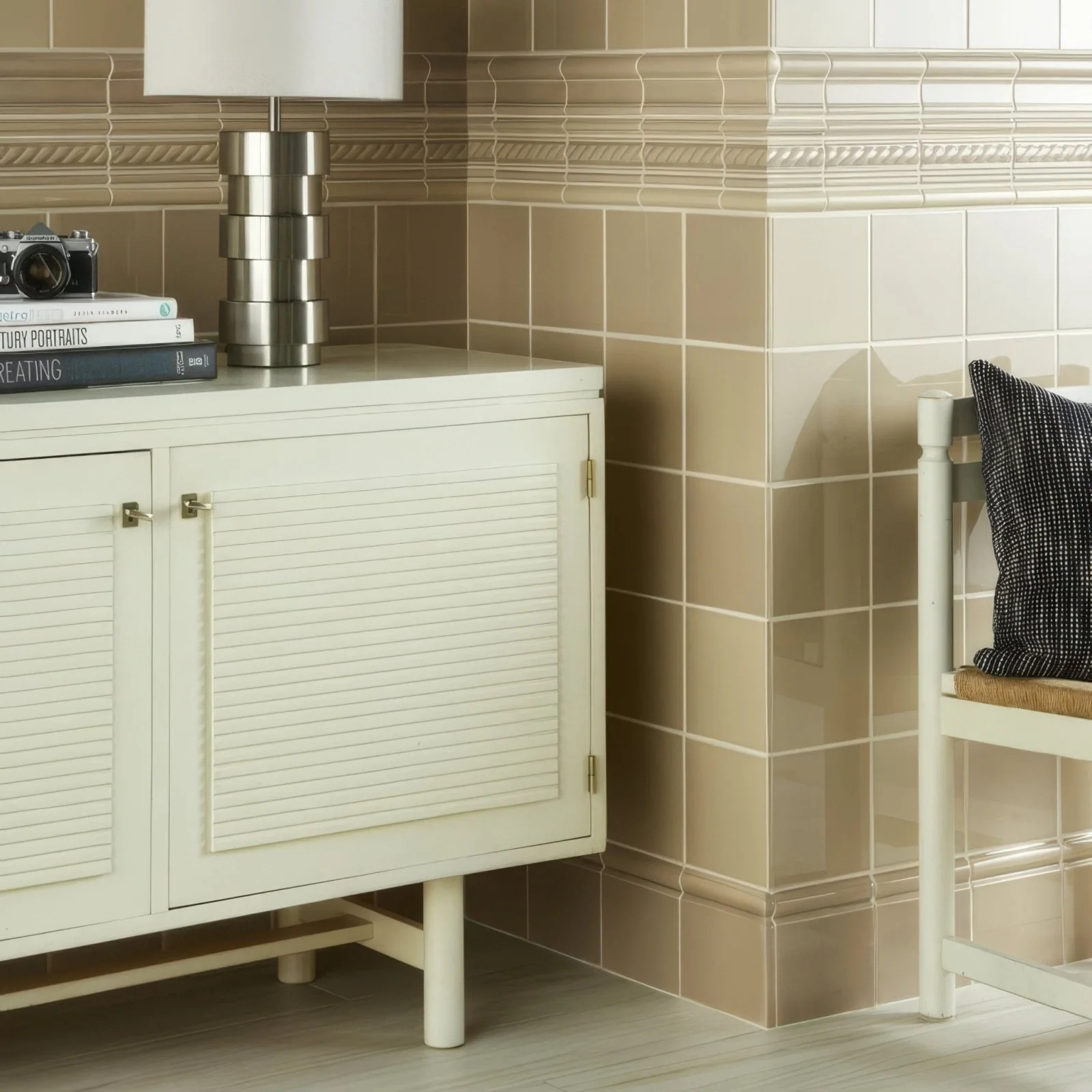 Palladian Beige is a versatile, warm pale caramel shade that's perfect for creating timeless and elegant spaces. Slightly more neutral than a cream, this colour pairs beautifully with County White and Ivory tiles, offering a sophisticated and balanced look. Featuring the classic tile shape and size, Artworks field tiles are designed to coordinate seamlessly with mouldings, half tiles, and decorative pieces. Whether installed in a straight or offset pattern, these ceramic wall tiles add charm and character to bathrooms, kitchens, and more.