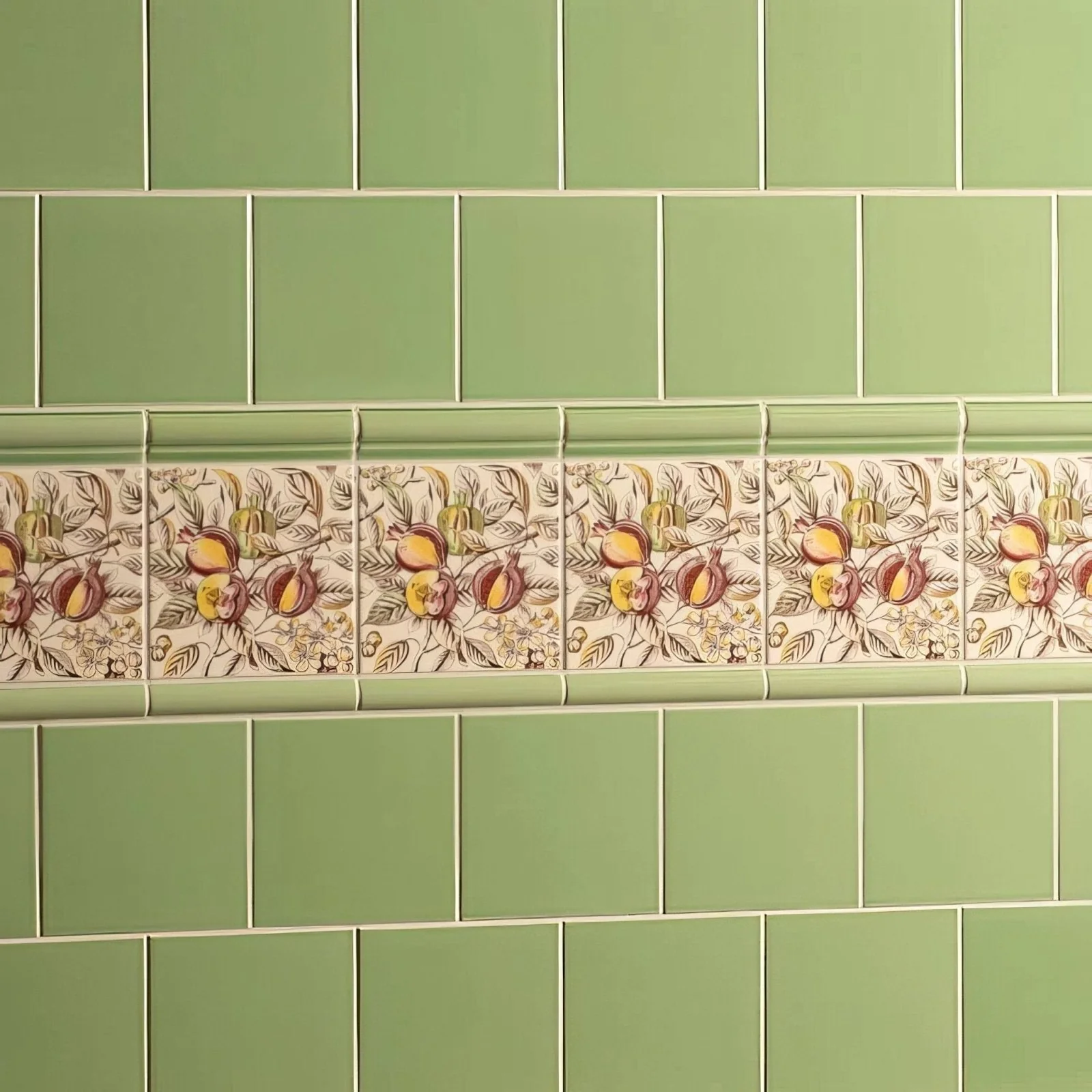 Palm Green is a stunning pale green shade, perfect for adding a fresh, Spring-inspired touch to your interiors. This timeless colour pairs beautifully with Brilliant White tiles, creating a clean and elegant look. Our Artworks field tiles feature the classic tile shape and size, designed to coordinate seamlessly with moulding pieces, half tiles, and decorative accents. These versatile ceramic wall tiles can be installed in a straight or offset pattern, making them ideal for bathrooms, kitchens, and more.